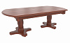 Большой овальный стол из массива березы, который с помощью трех вставок может быть увеличен почти вдвое. В собранном виде вставки находятся внутри стола. Одна из трех тонировок дерева на выбор покупателя.